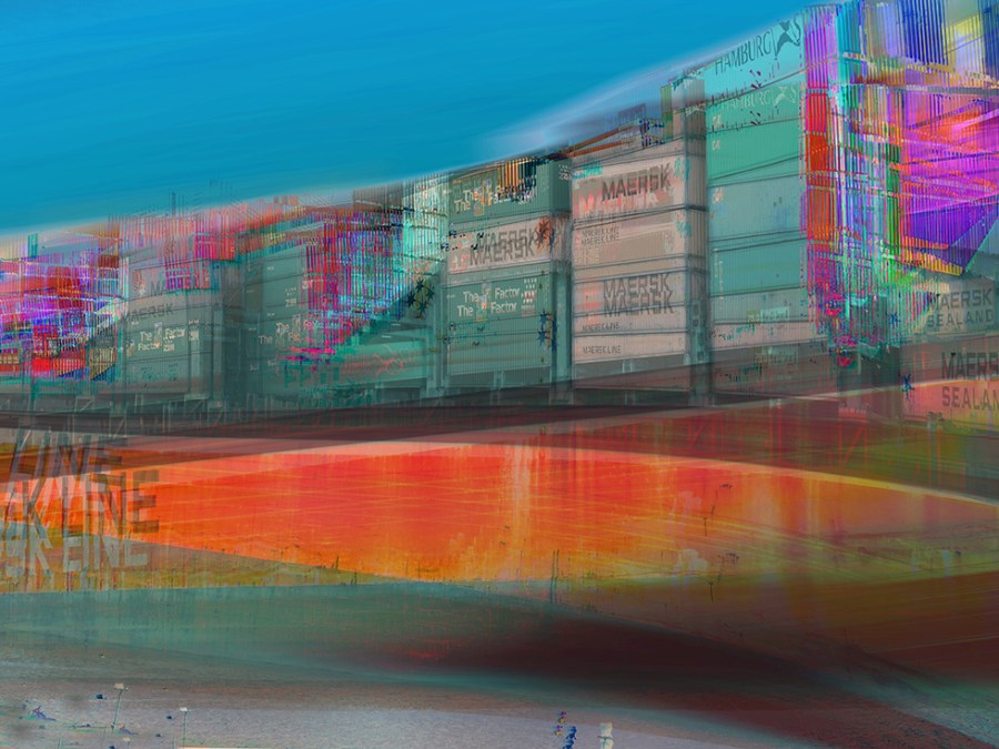 These images remind me of when we used to vacation on St Simon’s – it was fascinating to notice a speck on the horizon, then watch it through the day as it became a huge container ship that passed by on its way to unload in Brunswick. But they never looked this wonderfully psychedelic!