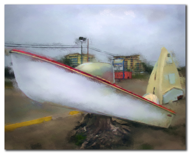 Along Tamiami Trail on Florida’s Gulf Coast there is a deep parking lot with old derelict boats scattered around between the parking spaces. Some are on stumps, others stuck in the ground pointing skyward. Perhaps they have been put there as decoration, or perhaps to help you find your car after a long day (or night). The sign out front says “Bob’s Boathouse,” and indeed there is an establishment set way back from the road, near the water’s edge.
