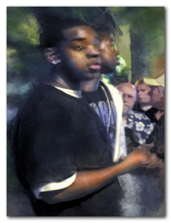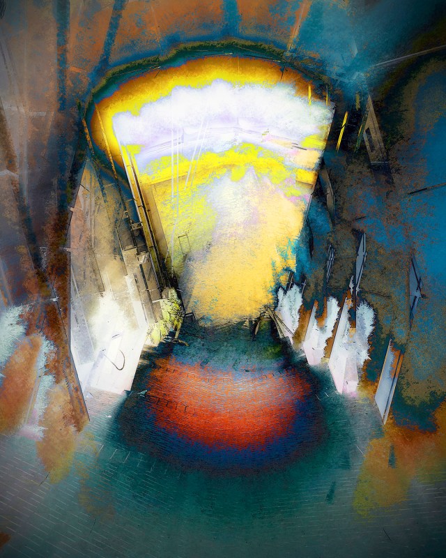 The original images were captured at night, handheld, without the benefit of flash. I then enhanced the indistinct and impressionistic qualities to make the images even less literal, and allow the viewer more freedom to reach their own conclusions.