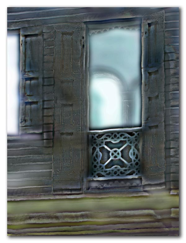 A window in a wall between two spaces allows us to look from one space into the other. Looking in, we are often looking from a public space into a more private one. Looking out, we are more often in the private space viewing the more public space beyond. Of course, there are times that relationship is more ambiguous, or even reversed. As a visual metaphor, an open window between two places can also suggest different perceptions of reality layered upon each other and the possibility of movement or exchange between them. The two images here are examples of windows that explore these themes.